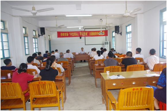 根據(jù)揭陽(yáng)農(nóng)墾集團(tuán)公司開展“不忘初心、牢記使命”主題教育工作部署,8月8日下午,集團(tuán)公司(農(nóng)墾局)黨組書記、董事長(zhǎng)朱勇到卅嶺農(nóng)場(chǎng)講“不忘初心、牢記使命”主題教育專題黨課。場(chǎng)機(jī)關(guān)全體干部、生產(chǎn)隊(duì)干部等30多人參加。黨課由農(nóng)場(chǎng)黨委書記、場(chǎng)長(zhǎng)盧國(guó)勤主持。