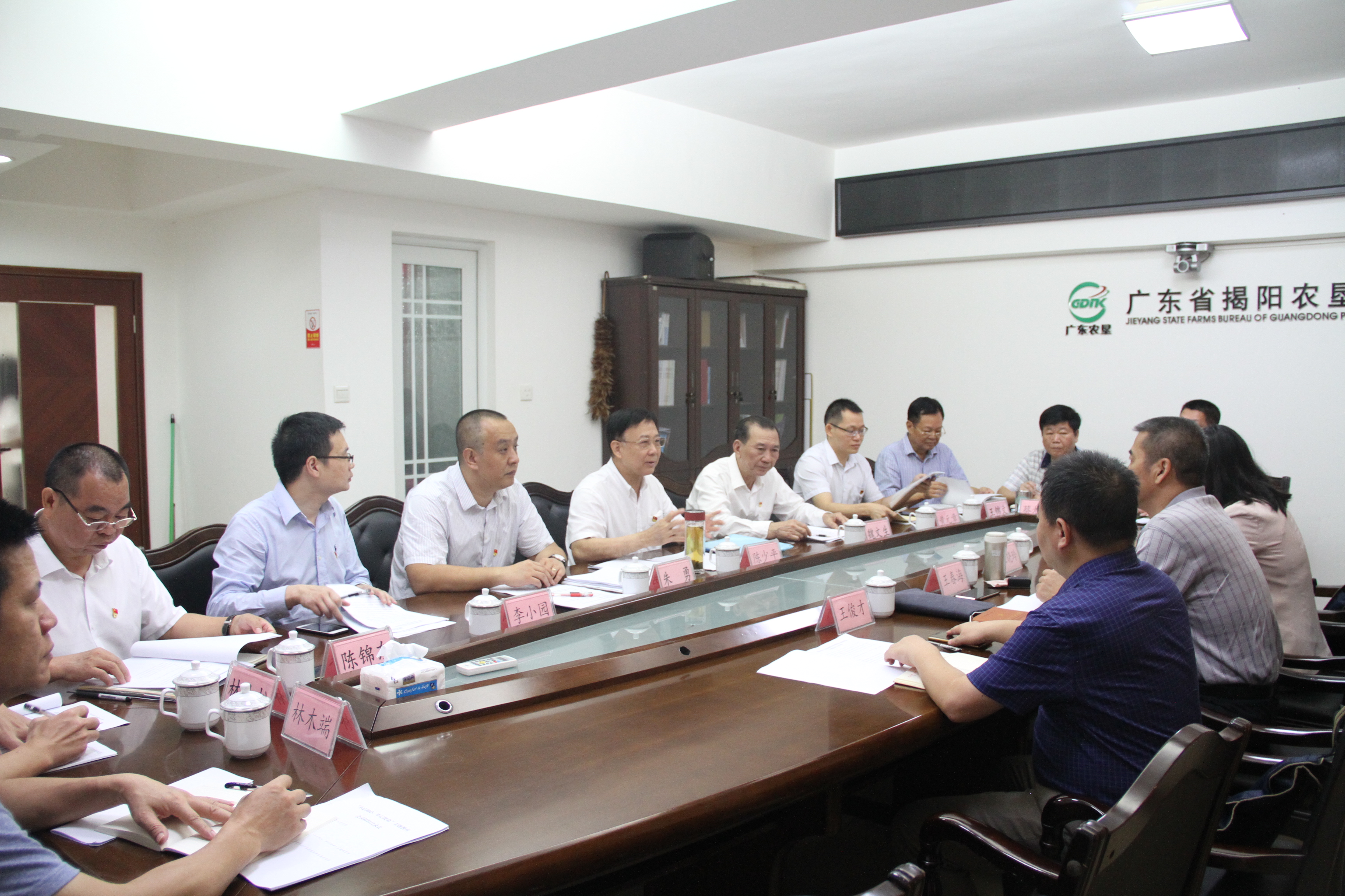 7月18日,廣東省第十七巡回指導(dǎo)組王春海等一行三人在省農(nóng)墾集團(tuán)公司(農(nóng)墾總局)黨委書記、董事長(局長)陳少平陪同下到揭陽農(nóng)墾調(diào)研督導(dǎo)墾區(qū)“不忘初心、牢記使命”主題教育工作。