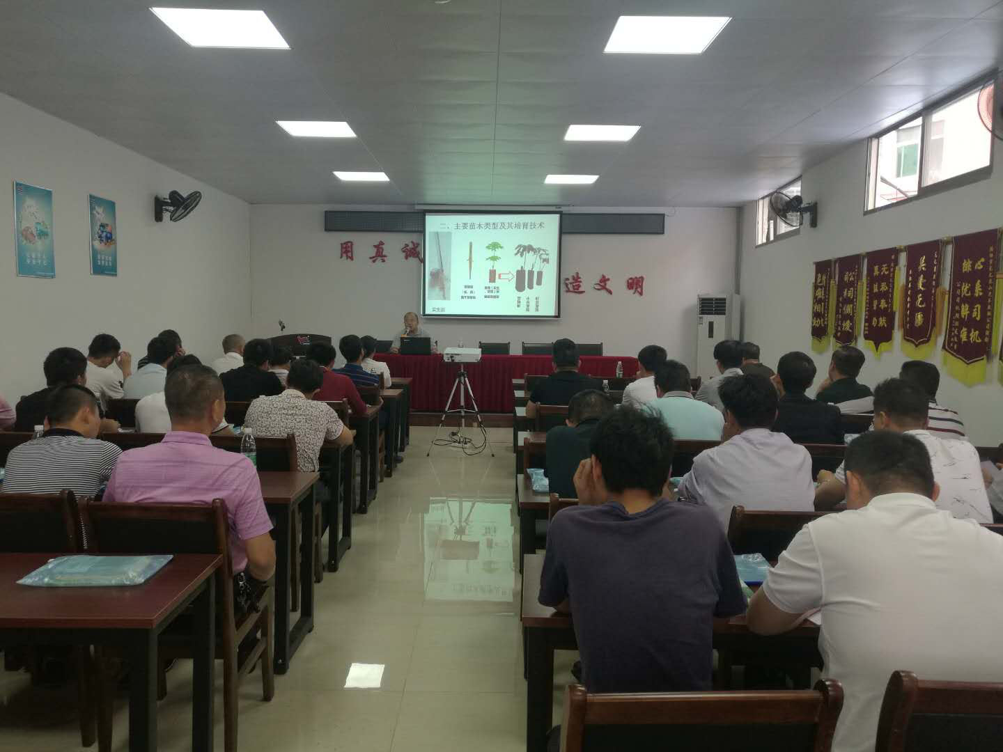 墾區(qū)新型職業(yè)農(nóng)工培育培訓(xùn)班得到廣東省農(nóng)廣校茂名分校的大力支持與幫助,直接采取送教下鄉(xiāng)、送教至田頭。4月26日,在省農(nóng)廣校茂名分校周海汕校長(zhǎng)及周主任等的組織下,周海汕校長(zhǎng)不但親自授課,還特邀請(qǐng)國(guó)家天然橡膠產(chǎn)業(yè)技術(shù)系湛江試驗(yàn)站長(zhǎng)羅萍研究員、中國(guó)熱帶科學(xué)研究院橡膠研究所副研究員以及全國(guó)割膠冠軍、全國(guó)五一勞模劉金鳳來(lái)到揭陽(yáng)墾區(qū)千里送教,進(jìn)行圖文并茂的言傳身教。