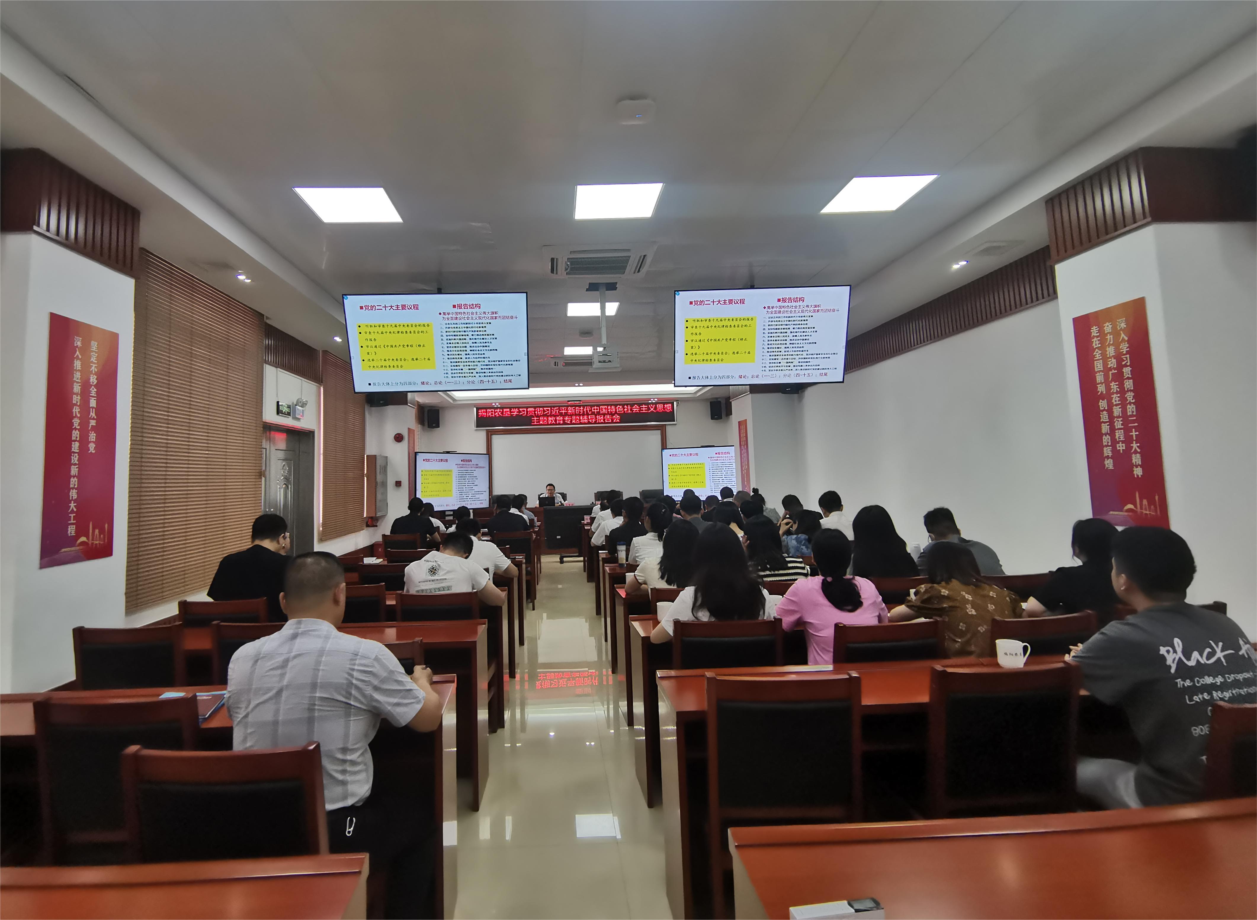 5月19日上午,揭陽農墾邀請中共揭陽市委黨校副教授、黨史黨建室主任王俊駿同志作主題教育讀書班專題輔導。