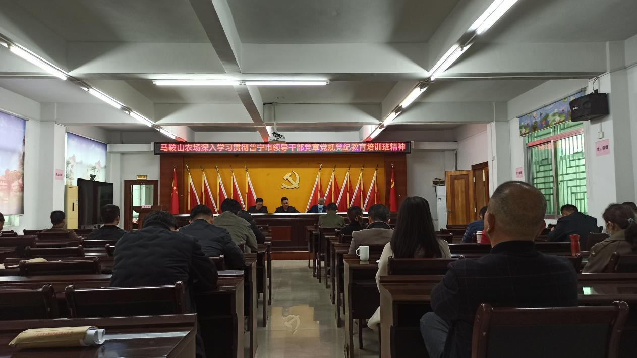 12月20日下午,馬鞍山農(nóng)場(chǎng)召開深入學(xué)習(xí)貫徹普寧市領(lǐng)導(dǎo)干部黨章黨規(guī)黨紀(jì)教育培訓(xùn)班精神會(huì)議。農(nóng)場(chǎng)機(jī)關(guān)全體干部,各村(居)管區(qū)書記參加了會(huì)議。會(huì)議由黨委書記黃七星主持。
