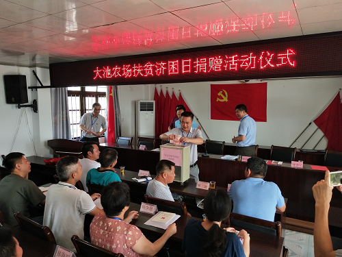 7月1日上午,大池農(nóng)場(chǎng)開展扶貧濟(jì)困日捐贈(zèng)活動(dòng)儀式,參加儀式人員有機(jī)關(guān)全體工作人員及各村(居)書記約50人,全體領(lǐng)導(dǎo)干部職工紛紛援手,為扶貧濟(jì)困出力。