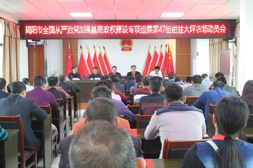 為深入貫徹落實揭陽市委六屆六次全會精神,揭陽市全面從嚴(yán)治黨加強(qiáng)基層政權(quán)建設(shè)專項巡察組將進(jìn)駐普寧各鄉(xiāng)鎮(zhèn)場街道,對普寧市28個鄉(xiāng)鎮(zhèn)場街道568個村(社區(qū))黨組織(延伸到村民小組)開展為期三個月的全面從嚴(yán)治黨加強(qiáng)基層政權(quán)建設(shè)專項巡察。2019年3月19日,揭陽市全面從嚴(yán)治黨加強(qiáng)基層政權(quán)建設(shè)專項巡察第47組組長吳振旭帶領(lǐng)其他成員共3人進(jìn)駐大坪農(nóng)場。3月20日上午,大坪農(nóng)場召開市全面從嚴(yán)治黨加強(qiáng)基層政權(quán)建設(shè)專項巡察工作動員會議,會議由場黨委書記官錦周同志主持,參加會議的人員有揭陽市委專項巡察組全體同志,普寧市掛鉤大坪農(nóng)場領(lǐng)導(dǎo),場機(jī)關(guān)全體干部職工、村(社區(qū))“兩委”成員、鄉(xiāng)賢咨詢委員會代表及村民代表等40多人。